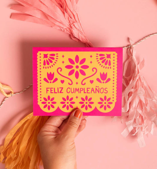 Papel Picado Cumpleaños greeting card | Spanish birthday: Cello sleeve