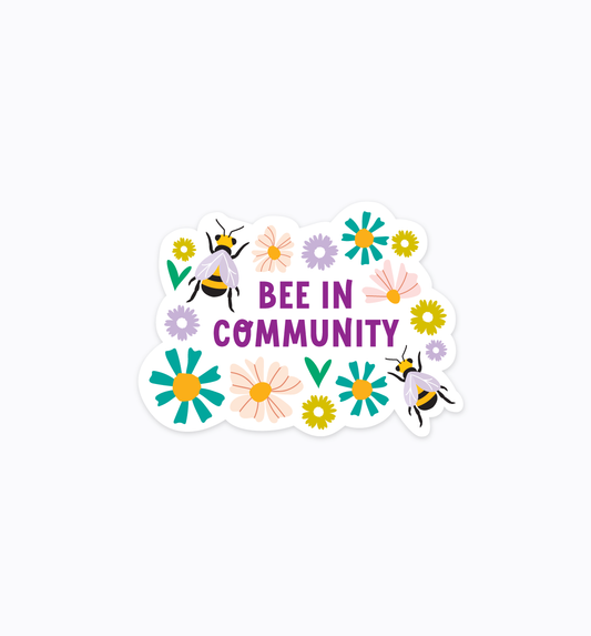 Bee in Community vinyl waterproof sticker | Floral sticker