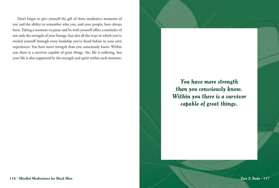 In Mindful Meditations for Black Men, mental health expert Jor-El Caraballo teaches Black men of all ages about the many benefits that mindfulness and meditation provide. From finding peace to practicing self-compassion and normalizing fear and defining success, each of the seventy entries in this book provide context and insight on a certain topic rooted in the practice.