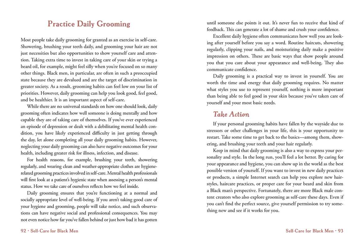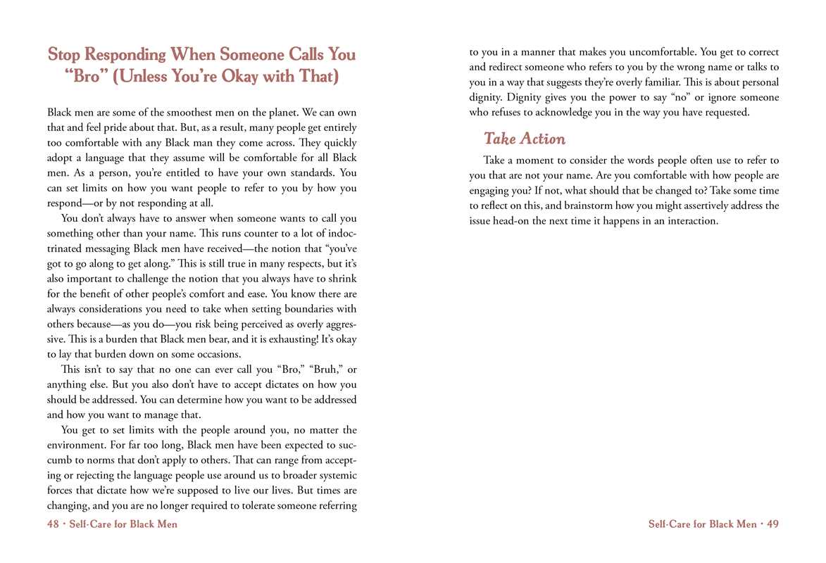 “Self-Care for Black Men is so important...designed to help Black men manage their mental health.” —The Root A self-care guidebook full of activities for Black men everywhere pursuing joy, creating connections, confronting racism, and working through intergenerational trauma. Black men desperately need care and restoration. But what does that restoration look like when you’re a Black man in today’s world? How do you take care of your mental health when men who look like you die at the hands of police? How do you find peace and refuge when you’re not sure how to keep up with your partner? Or navigate a challenging workplace? While scrolling through social media feeds, you may feel like you don’t have access to wellness like women do. But Black men need a space for self-care too. In Self-Care for Black Men, you will find practical answers to your questions. This book contains self-care strategies that address some of the most common issues Black men face, such