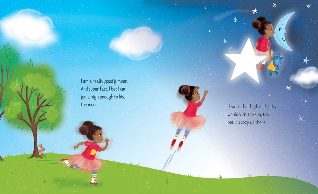They enact their magnificent, wonderful, genius plan, offering the sun a cup of coffee, shining a light at it so it will shine back, and jumping on a trampoline to reach the sun and push it higher. But before long, Stella begins to wonder…are there downsides to keeping the sun up forever?