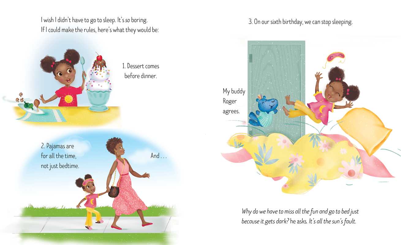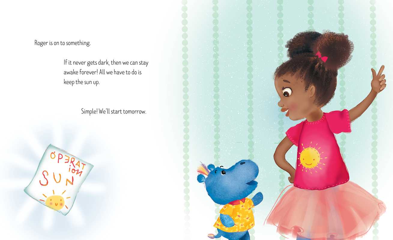 If Stella had her way, she would stop sleeping on her sixth birthday. Because sleep is boring. And there are so many better things you could be doing. And Stella is tired of being tired. So she comes up with a plan. People only have to go to bed when it gets dark, and it only gets dark because the sun goes down. If she can keep the sun in the sky, she and her best friend, Roger, can stay up for a hundred years!